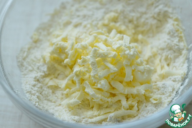 4. В чашку натереть масло на терке и замесить плотное тесто. Если нужно можно добавить 1-2 ст. ложки холодной воды.