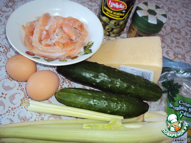 Нам понадобятся вот такие продукты. Из рыбы я взяла малосольные брюшки сёмги.