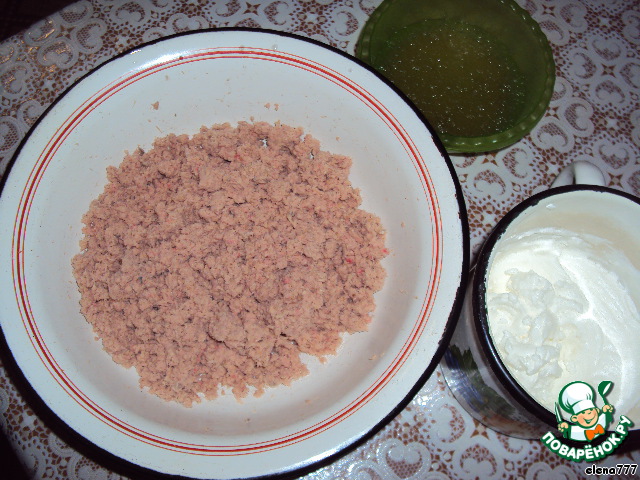 Филе лосося отварить в слегка подсоленной воде, пропустить через мясорубку.