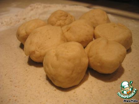 Каждый шарик раскатываем в тонкую круглую лепешку диаметром 10-12 см.