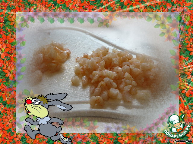 Креветки слегка обжариваем в сливочном масле и измельчаем.