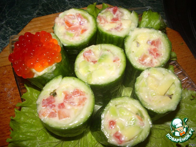 | Такая закуска давно известна нашей семье, меняется только начинка... предлагаю и вам попробовать:) Ну а заодно выставлю на конкурс "Gorenje: новогодняя композиция" |