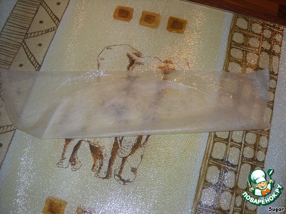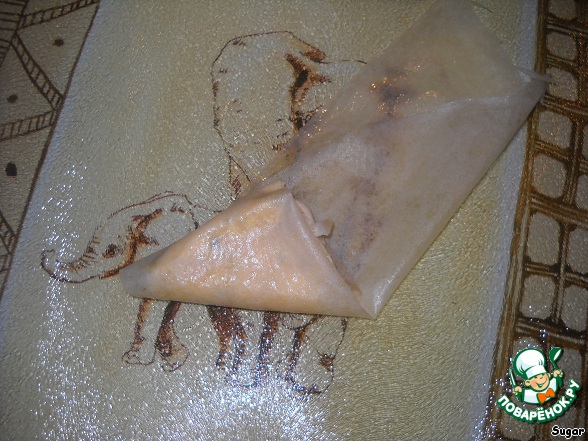 Застилаем противень бумагой для выпечки и выкладываем получившиеся треугольники. Смазываем их оливковым маслом.