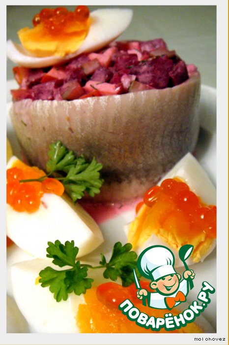 | Порой селедочка так хороша, что прятать еe в очередную шубу просто негуманно! Предлагаю вам вариант, который украсит ваш стол. Идею кольца подсказал кулинар Schrat c немецкого сайта, за что выношу ему благодарность! |