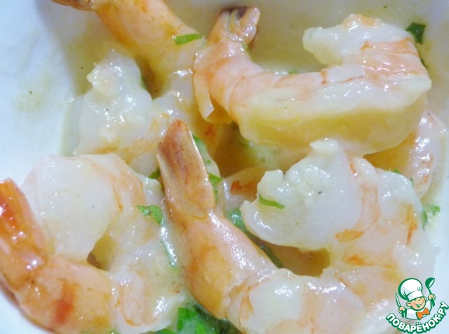 Полейте креветки и хорошо перемешайте. Накройте и поставьте в холодильник на 2 часа, иногда перемешивая.