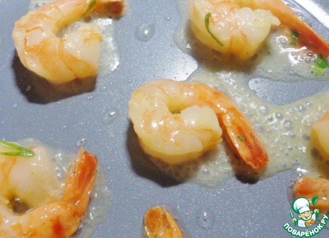 Разогрейте сковороду и слегка смажьте маслом. Жарьте креветки 4 минуты, переворачивая, когда сторона станет розовая.