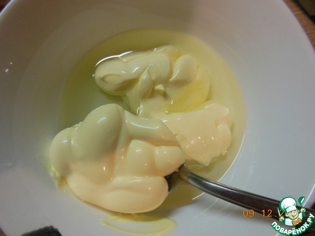 Ещё раз перемешаем нашу заливку, и заправляем селёдку.