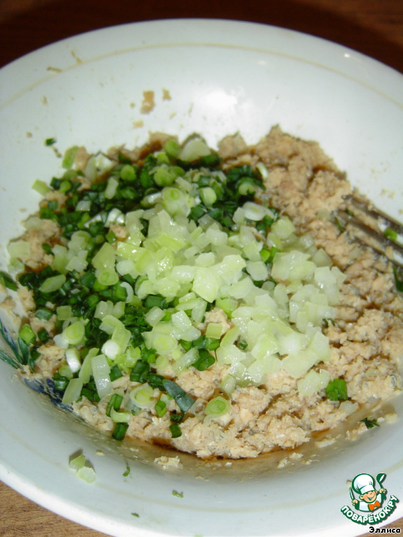 Мелко нарезать зеленый лук.