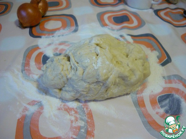 Смешиваем муку и дрожжи, делаем воронку и добавляем яйцо, соль, масло растительное и молоко. Хорошо вымешиваем тесто. Отставляем его на полчаса в теплое место.