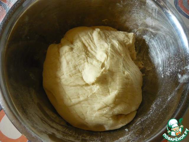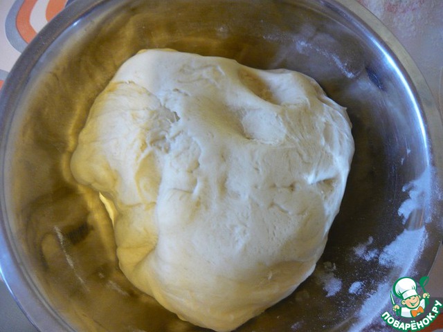 Прошло полчаса, возвращаемся к тесту, вымешиваем его еще раз и оставляем опять минут на 45 в теплом месте.