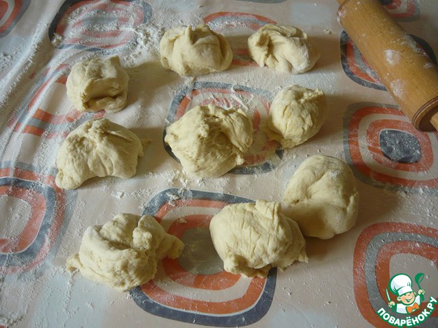 Готовое тесто делим на 12 одинаковых частей и одну маленькую. Её будем использовать для украшения.