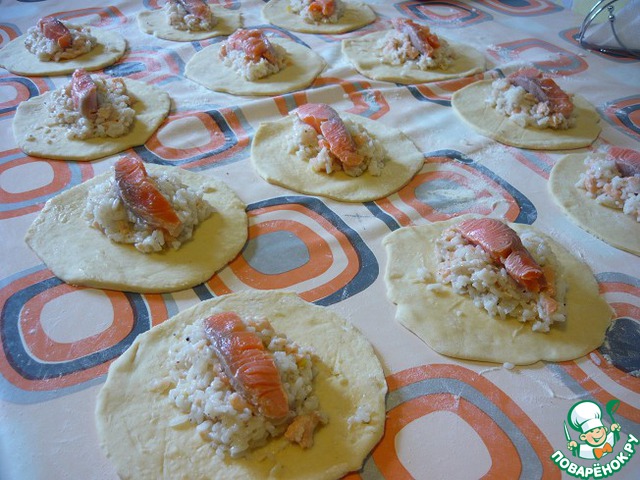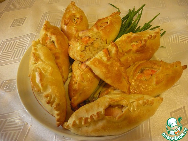 | Для всех, кто любит рыбалку и просто поесть рыбку, предлагаю закусочные пироги - расстегаи "рыбацкие". Фарш из двух видов рыбы и риса. Вариант эконом, а получаются сочные и нежные. На этот раз рыба для них была "поймана" на прилавке магазина, но обошлось в конечном счете все совершенно недорого. Так что, надеюсь, Вам понравится. |