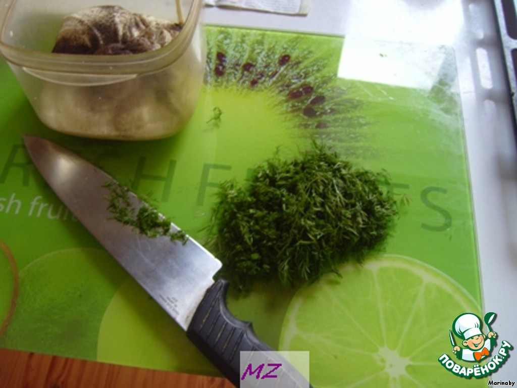 Перчим и добавляем укроп в творог (если кому-то надо, добавим сметану).