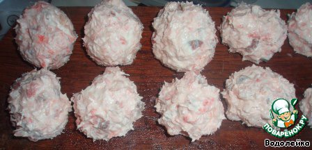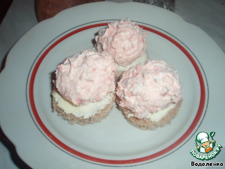 На каждый кусочек хлеба уложить сырно-рыбный шарик.