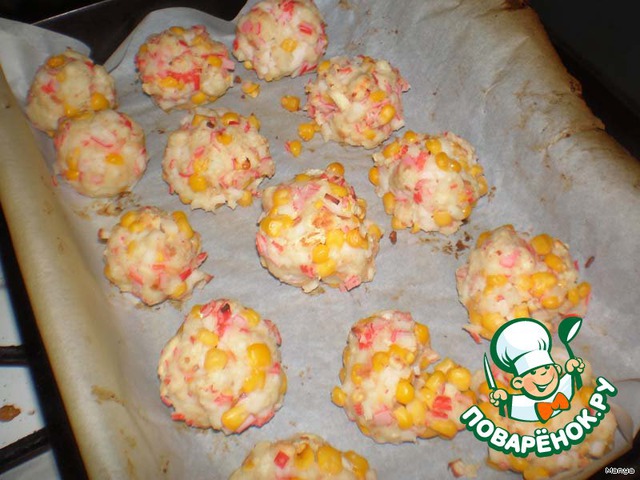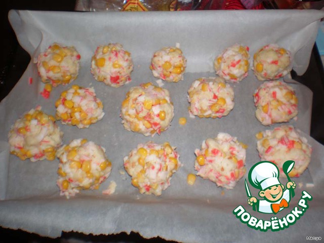 Из полученной массы сформировать шарики и выложить их на противень.