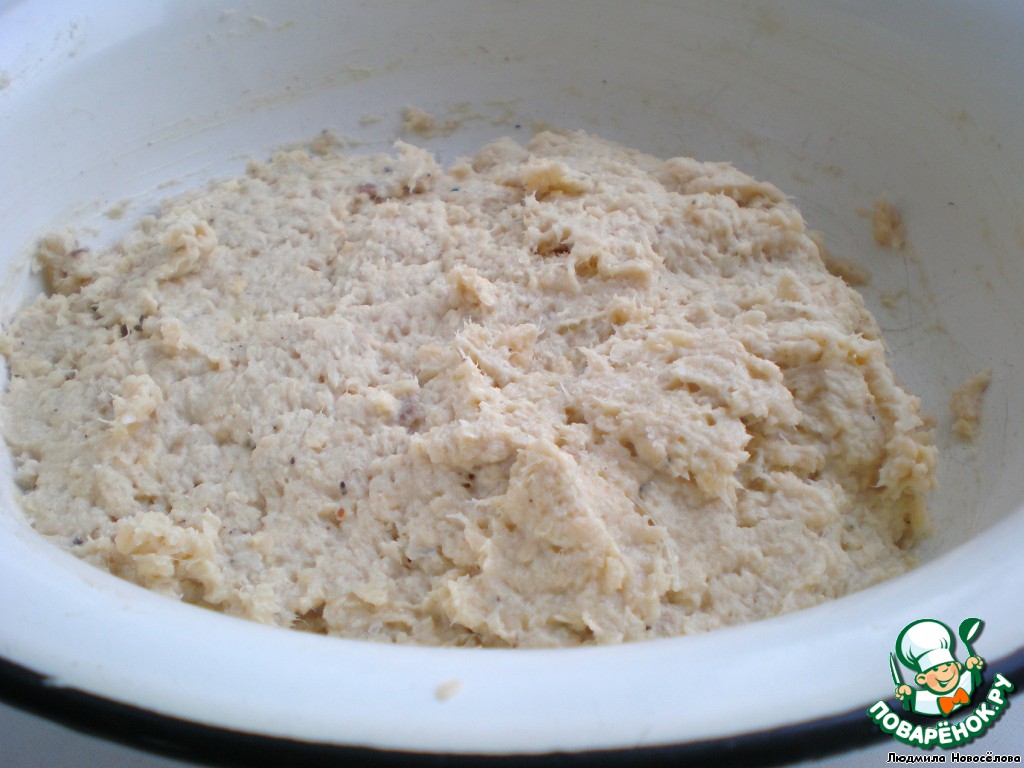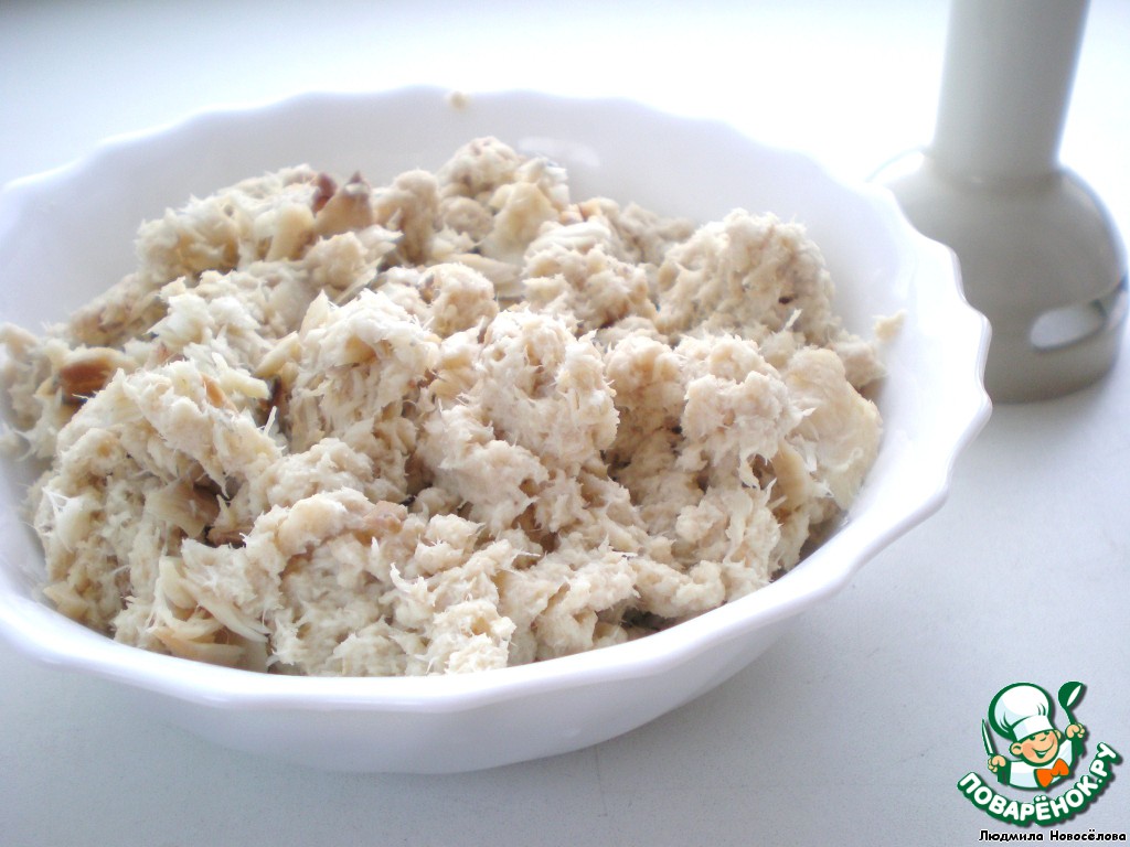 Рыбное пюре растерли с мягким сливочным маслом, тертым сыром, горчицей, перцем.