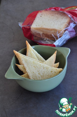 Из хлеба приготовить гренки. Я покупаю нарезанный хлеб квадратной формы.