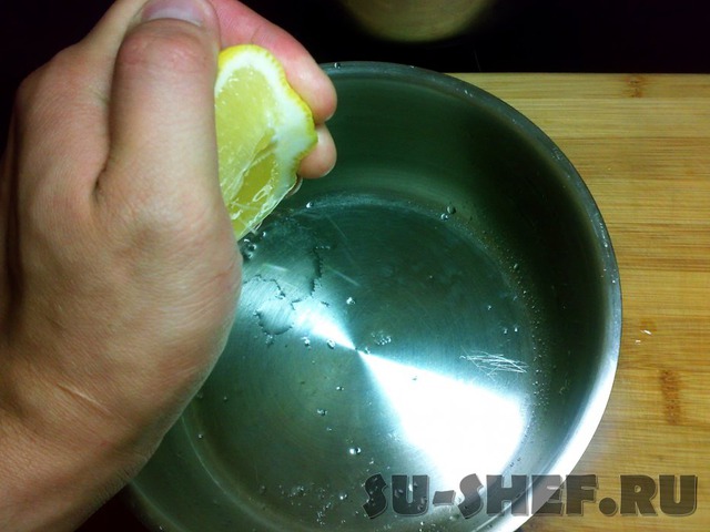 В небольшую глубокую посуду выжать сок лимона (1/2 лимона).