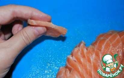 Очищаем от шкурки и удаляем все косточки. С внутренней стороны брюшка срезаем пленку.