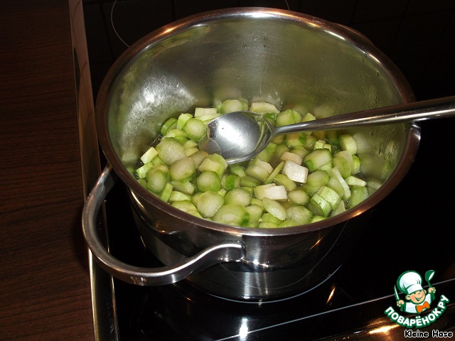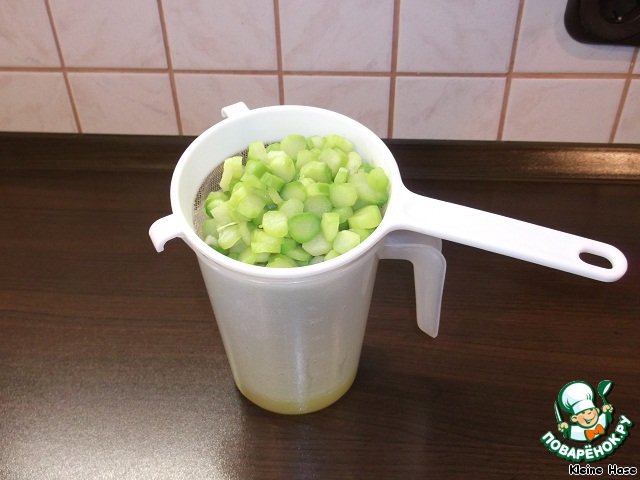 Мне показалось, что кусочки спаржи должны быть ещё мельче, и я ещё немного измельчила уже отварную спаржу. Фото измельчённой спаржи не делала.