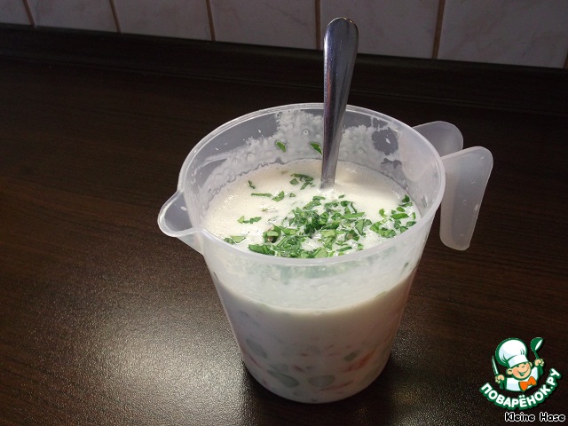 В остывший бульон вводим сметану, сок одного лимона, солим, перчим, добавляем немного сахара по вкусу, вводим оставшиеся 15 гр желатина и погружным миксером взбиваем 1 минуту.