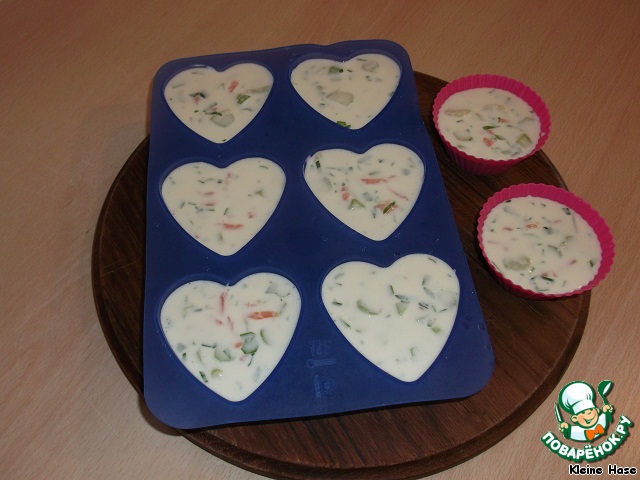 Силиконовые формы взбрызгиваем холодной водой и ставим их на удобную для переноса поверхность - поднос, разделочная доска и т.п.