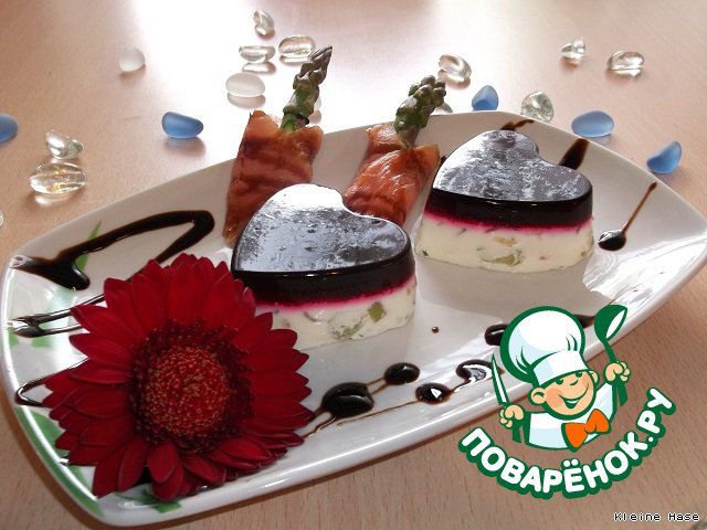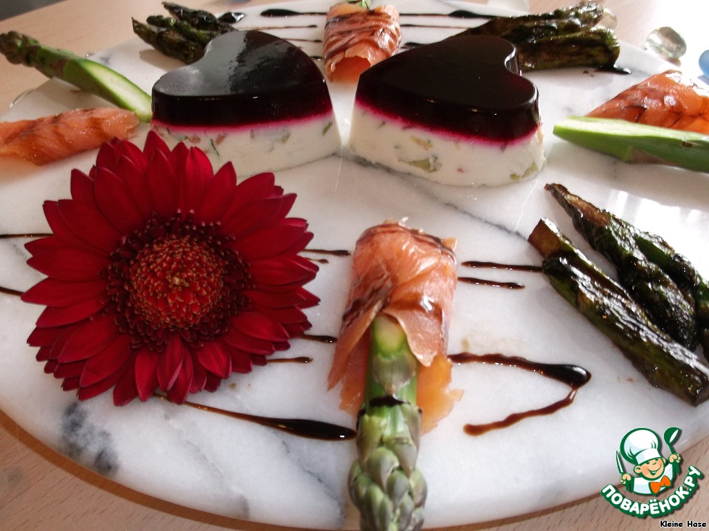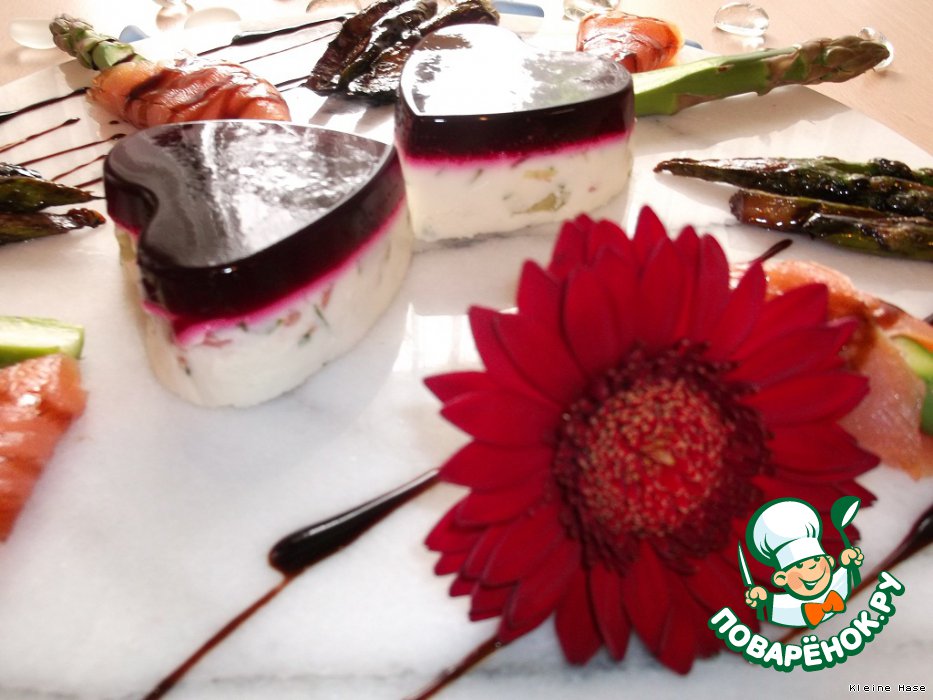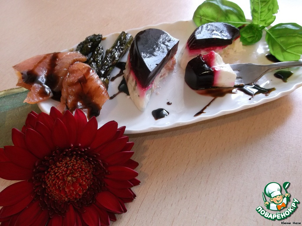 Мусс с лососем и спаржей в зеркальном свекольном желе