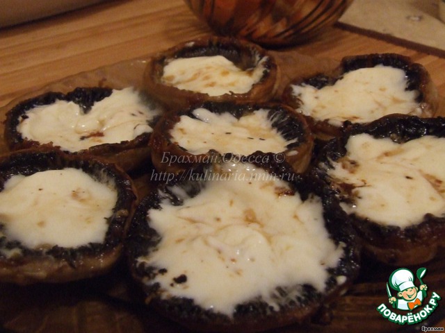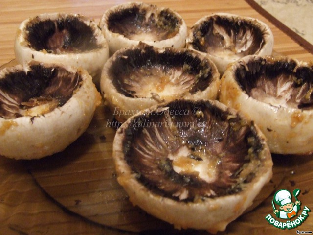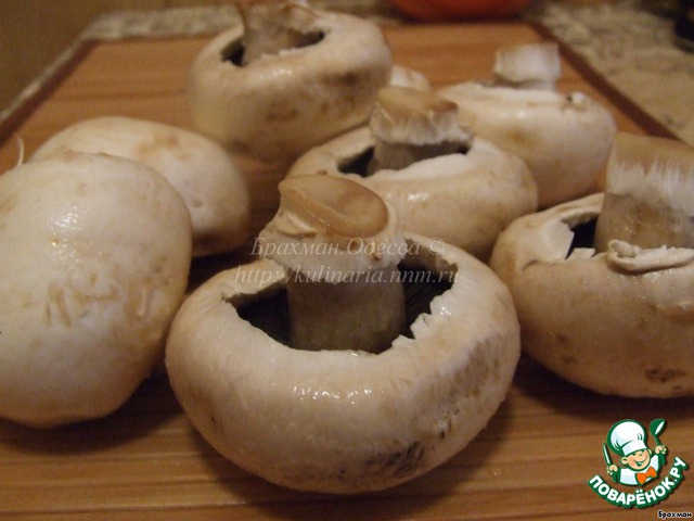 -Так, грибы остыли...Наполняем их сливочным сыром. Аккуратно и с душой. Мы ж славянские люди, у нас все должно быть с душой.