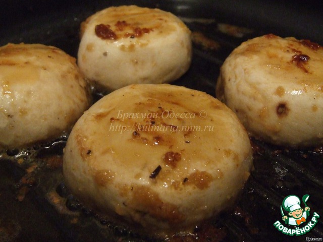-отдельно на гриле жарим на масле шампиньоны до красивого цвета.