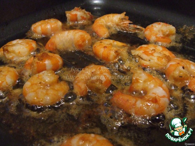 Жарим креветки по паре минут с каждой стороны.