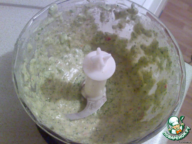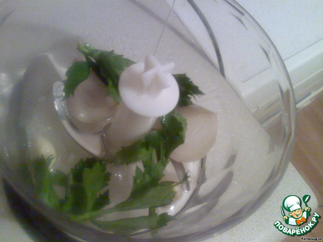 2.В блендер засыпать (кроме мидий) все ингредиенты и взбить.