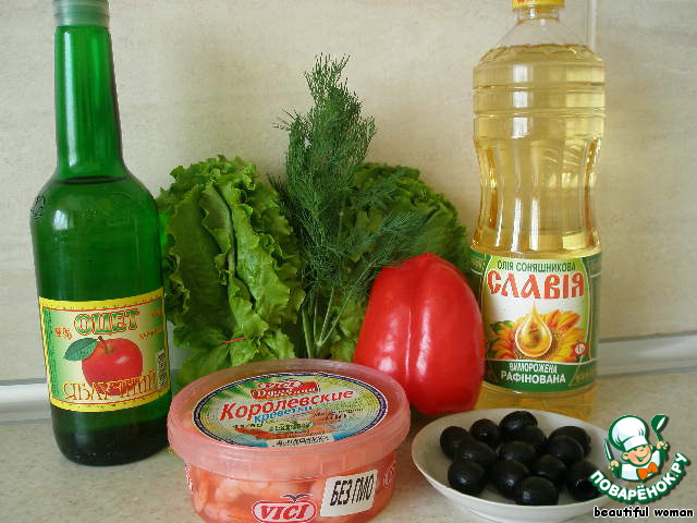 Для закуски нам нужны такие ингредиенты. Девочки, растительное масло и уксус поставила по ошибке.