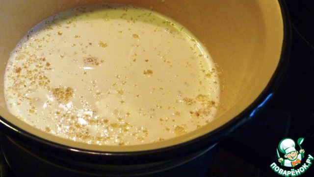 На водяной бане нагреваем сливки, до полного растворения желатина. Вливаем в комбайн. Сливки лучше процедить через мелкое сито.