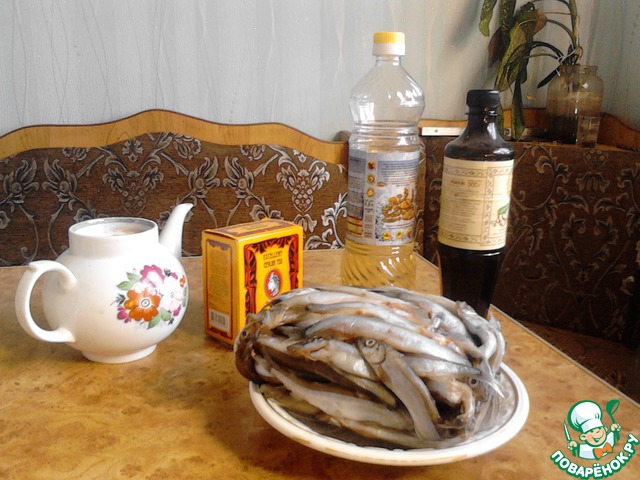 Рыбу укладываем на сковороду, смазанную маслом слоями, каждый слой солим (можно не солить слои, а развести соль в заварке, но тогда не проконтролируешь солёность), заливаем чайной заваркой, жидкий дым и аккуратно вливаем масло, чтоб не переливалось через край, важно оставить чуть чуть место для кипения, иначе вся плита будет уделана. масла может поместится меньше чем 2 стакана, я лью прям из бутылки, главное, чтоб вся рыба была покрыта.