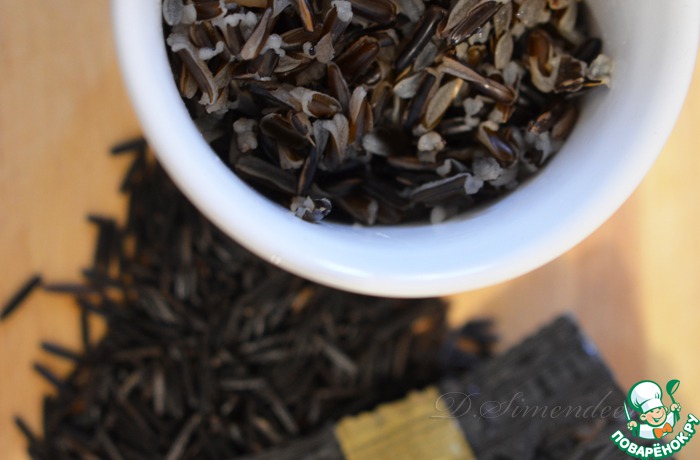 Заранее отварить дикий рис, согласно инструкции на упаковке. Я отвариваю до очень мягкого состояния, когда зерна риса уже начинают раскрываться.