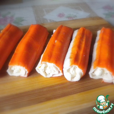 | Вкусные рулетики из крабовых палочек "А`море" с нежной начинкой. |