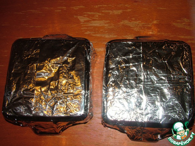 Я перевернула формы "кверху ногами", обернула их фольгой,