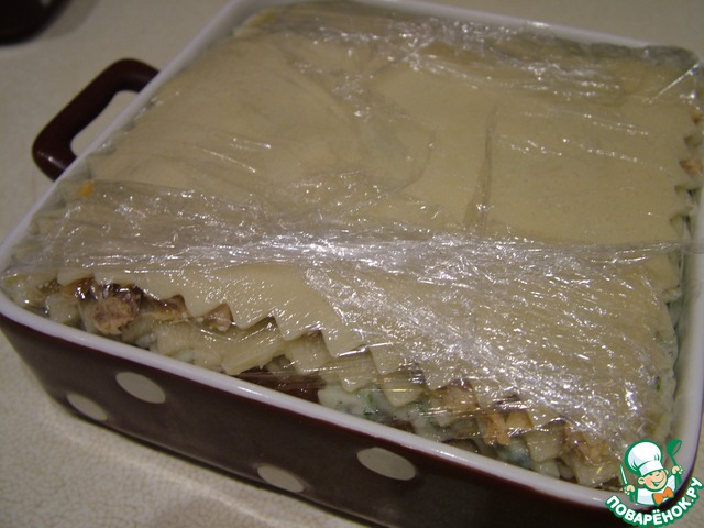 Лазанью отвариваем в большом количестве подсоленой воды и промываем в холодной воде.