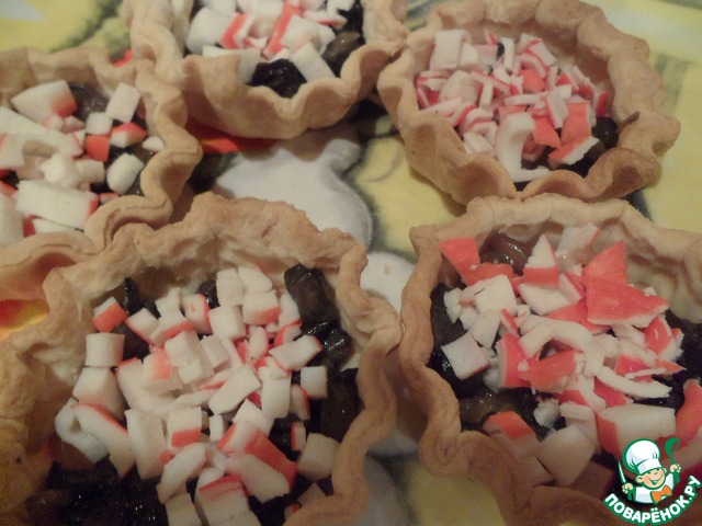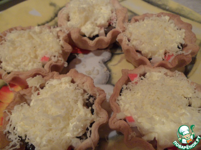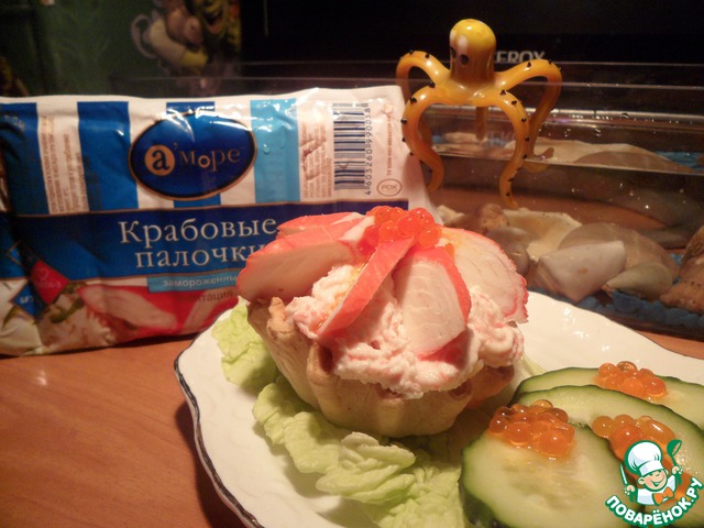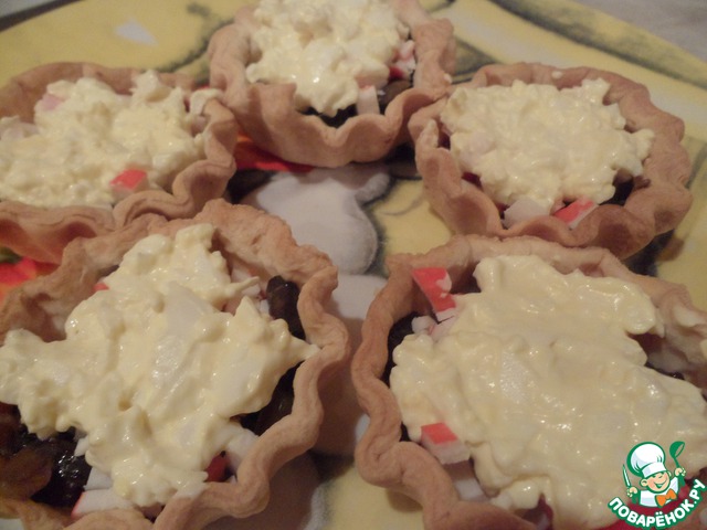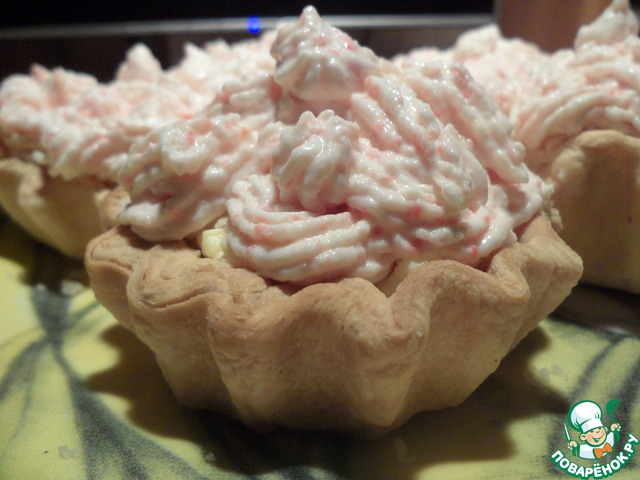 Слоеный крабовый салат в корзиночках с кремом из крабовых палочек