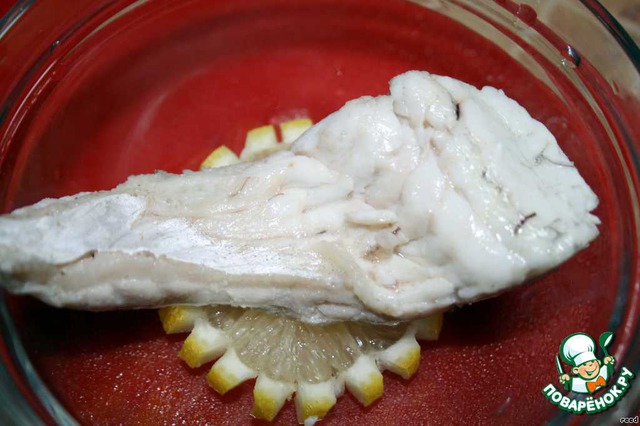 В форму выложить лимон, на него рыбу.