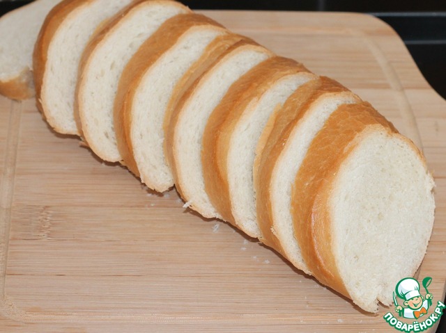 Багет нарежьте ломтиками. Включите духовку на 180 градусов.