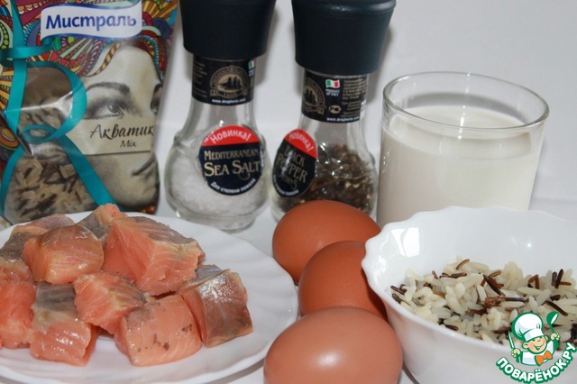 Рис, яйца, сливки и филе лосося пробить в блендере. Добавить по вкусу соль и молотый чёрный перец. Хорошо перемешать.