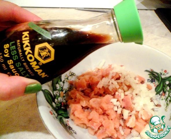 Добавить мелко нарезанный лук, соевый соус ТМ "Kikkoman".