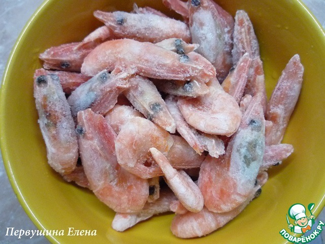 Обдать кипятком и очистить, оставив хвосты. Обжарить 1-2 минуты, до хрустящих хвостиков.