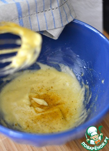 Посолить, поперчить, добавить карри, кумин по вкусу. Размешать.
