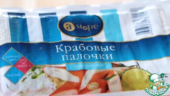 Теперь подготовим крабовые палочки. Например, отлично подойдут палочки марки "А'море".