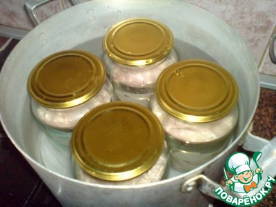 Приготовление занимает приблизительно 2ч с момента закипания в не полной литровой банке. После остывания можно использовать для изготовления всевозможных закусок и салатов или просто на хлебушек-на закуску.