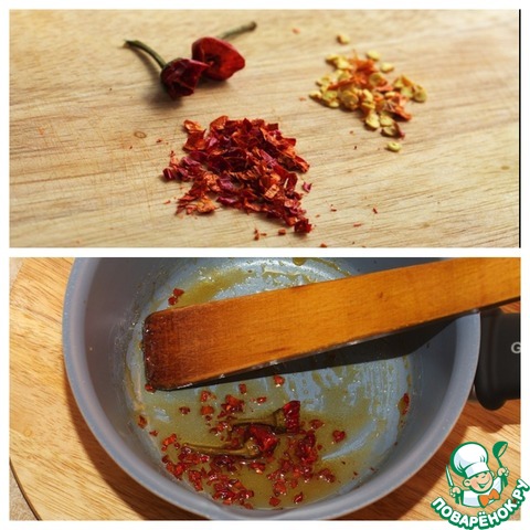 Для приготовления перечного варенья удалить семена перца чили, хвостик с небольшим количеством мякоти оставить для декора, чили нарезать мелкими кубиками. Отправить нарезанный чили в сотейник с толстым дном, добавить сахар, сок лимона, на медленном огне довести до кипения, греть 1 минуту.
