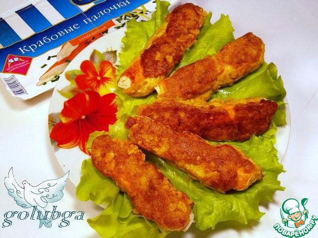 Окунаем крабовые палочки в готовую смесь,