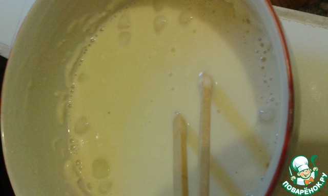 В холодную воду со льдом добавляем муку, слегка (Важно) помешивая, не нужно мешать тщательно и ни в коем случае не взбивать. Иногда еще в воду добавляют яйцо, но, на мой взгляд, оно только утяжелит кляр, тем более в таком соотношении воды и муки. Итак, перемешиваем слегка кляр, я пользуюсь палочками, до консистенции теста на жидкие блины. Опускаем креветки в кляр на пару минут так, чтобы хвостики торчали и можно было достать, пусть охладятся. В это время ставим вок на огонь и греем масло.